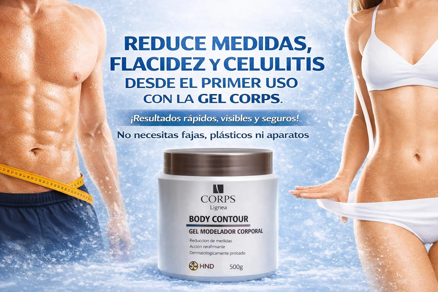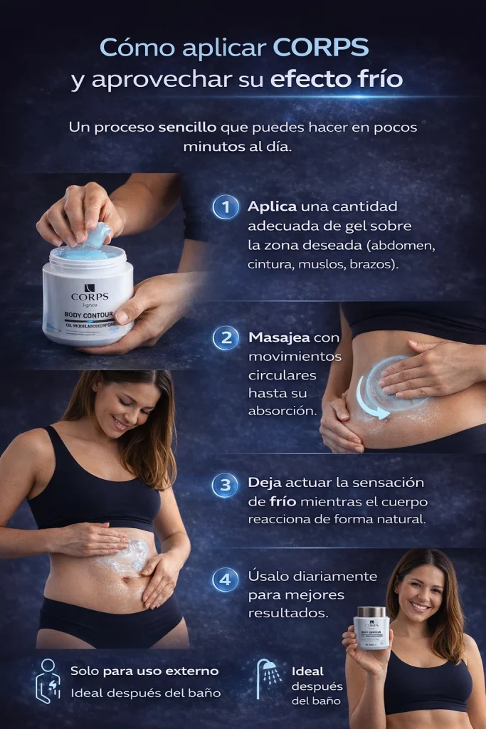Gel Reductor Corps, es un gel corporal diseñado para reducir medidas, combatir la celulitis y disminuir el aspecto de las estrías gracias a su efecto de crioterapia, que promueve la eliminación de toxinas y eleva la temperatura corporal.
